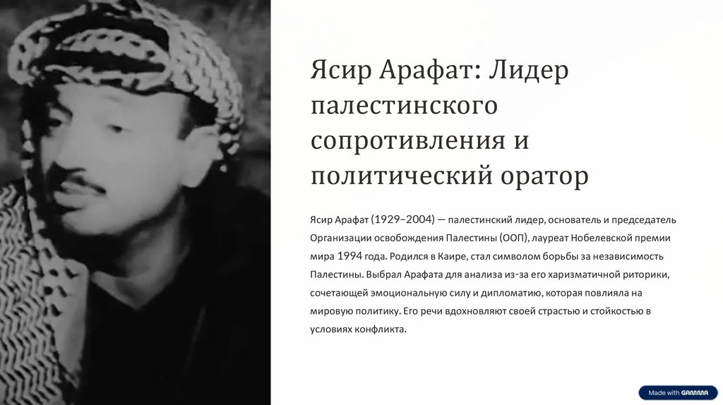 Палестины. Выбрал Арафата для анализа из-за его харизматичной риторики,