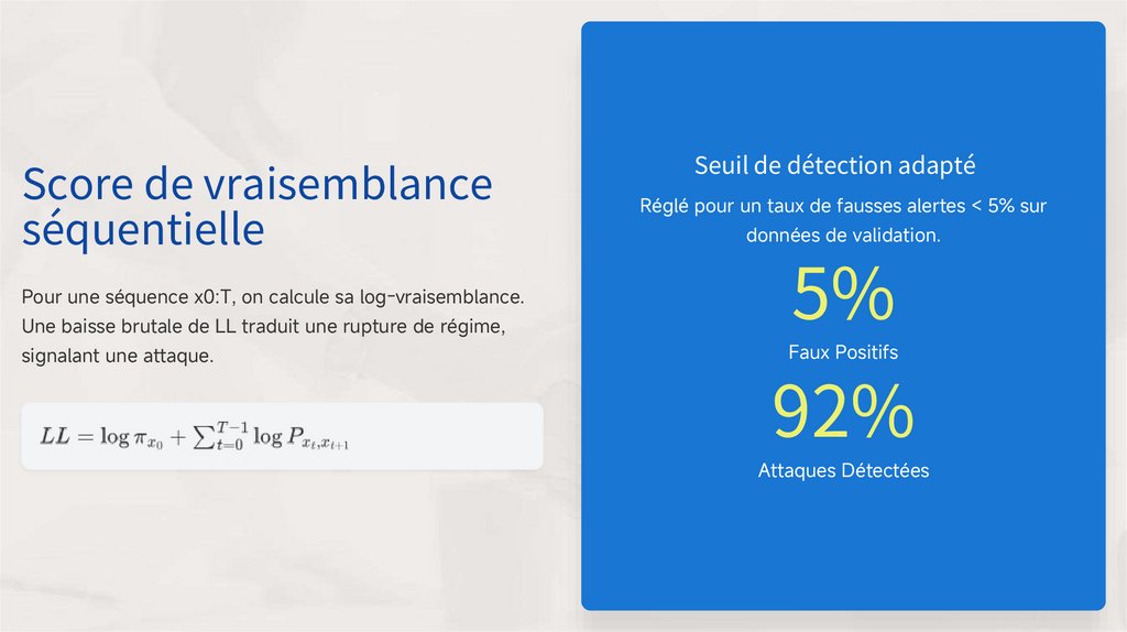 Réglé pour un taux de fausses alertes < 5% sur