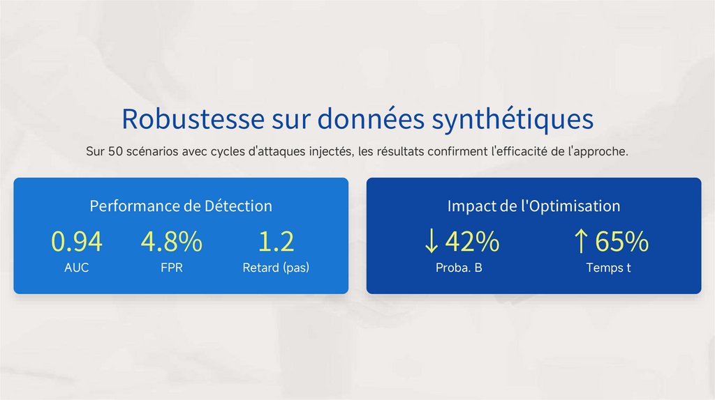 Sur 50 scénarios avec cycles d'attaques injectés, les résultats confirment l'efficacité de l'approche.