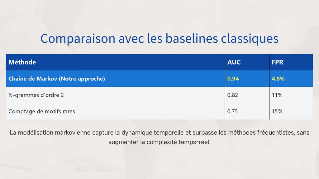 La modélisation markovienne capture la dynamique temporelle et surpasse les méthodes fréquentistes, sans