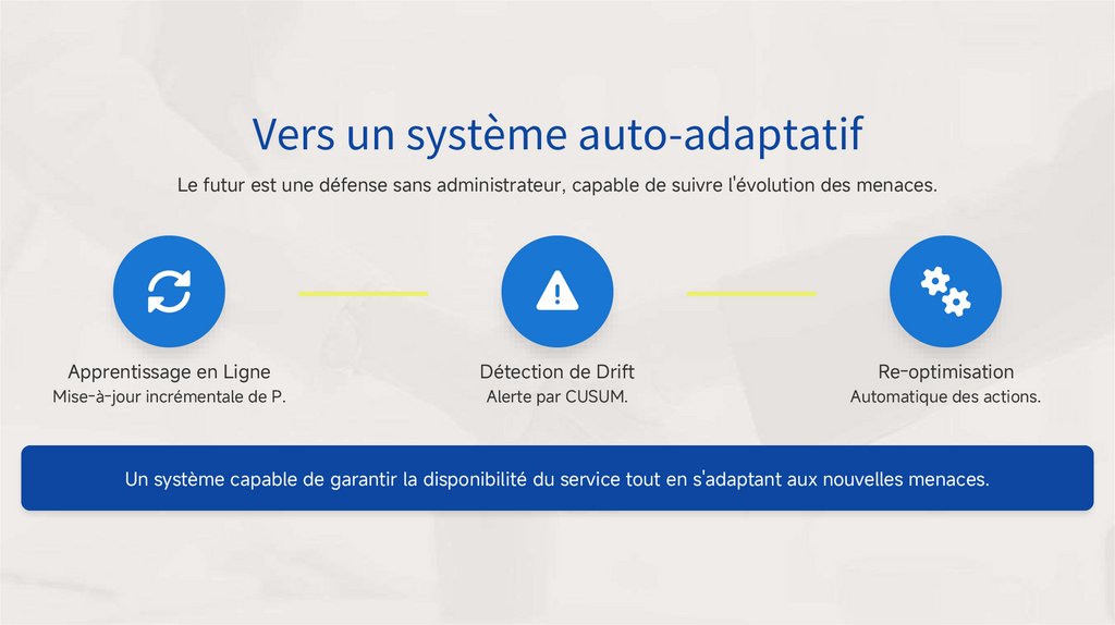 Un système capable de garantir la disponibilité du service tout en s'adaptant aux nouvelles menaces.