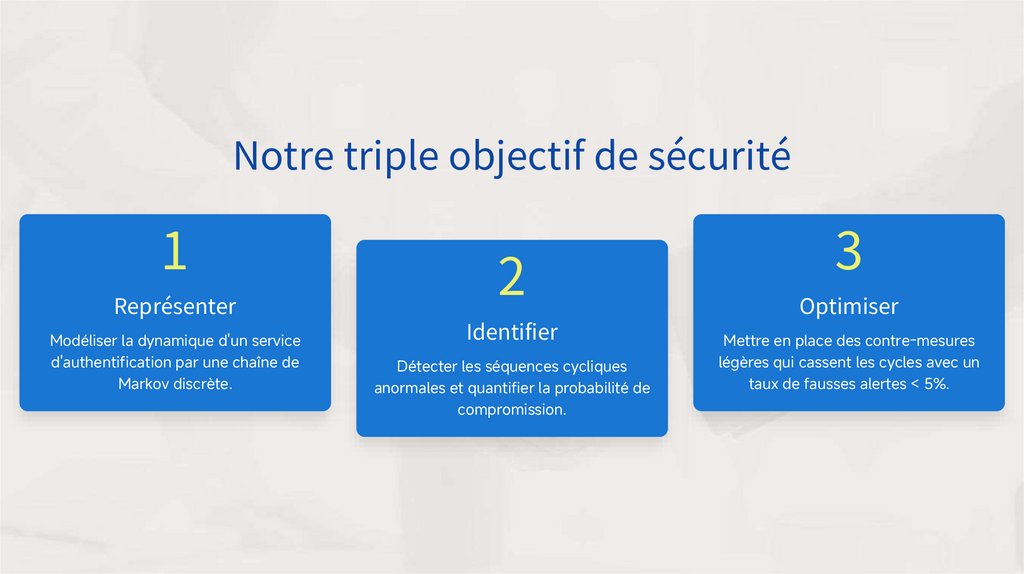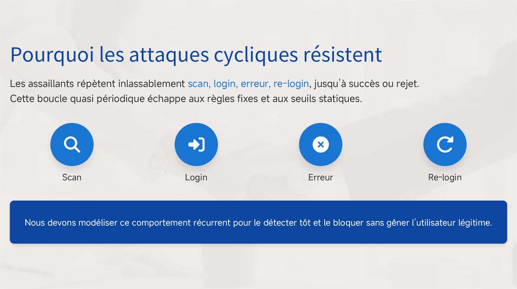 Nous devons modéliser ce comportement récurrent pour le détecter tôt et le bloquer sans gêner l’utilisateur légitime.