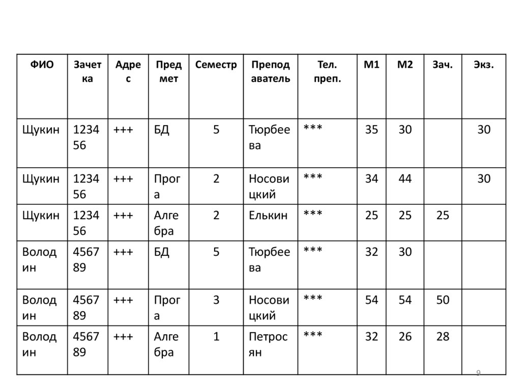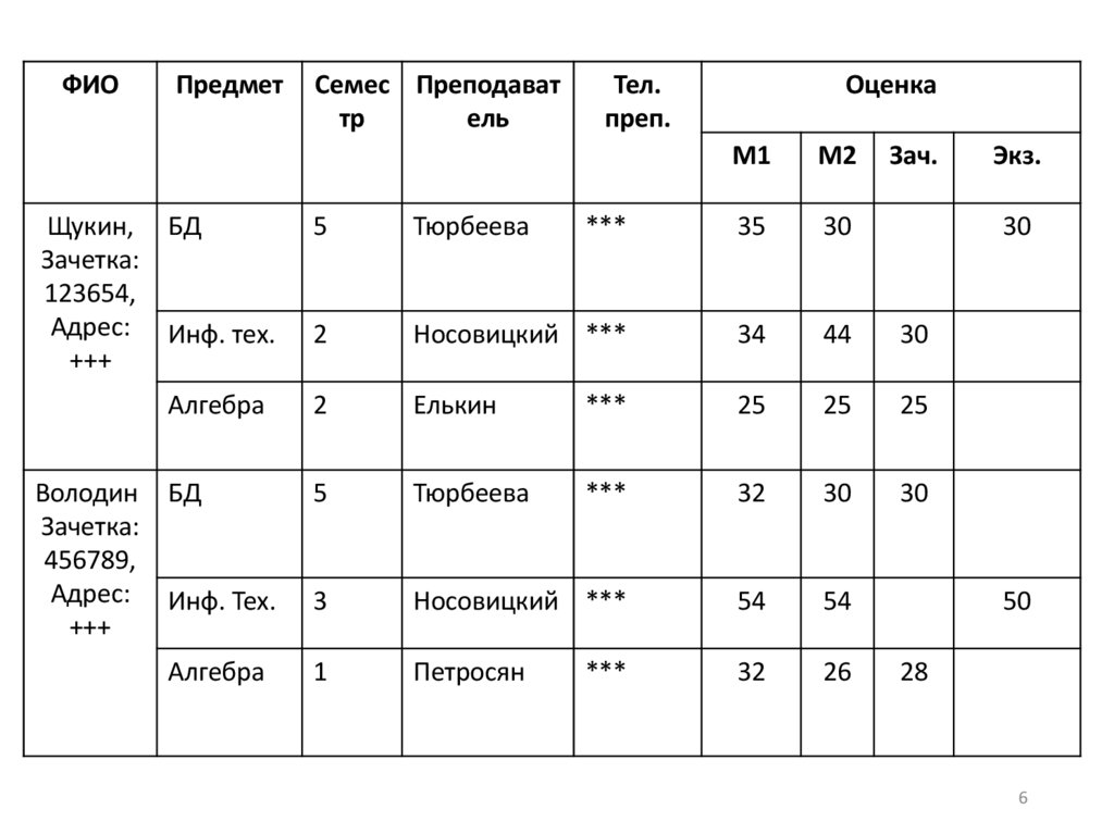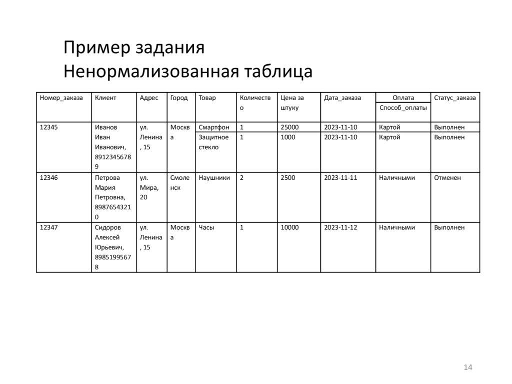 Пример заданияНенормализованная таблица