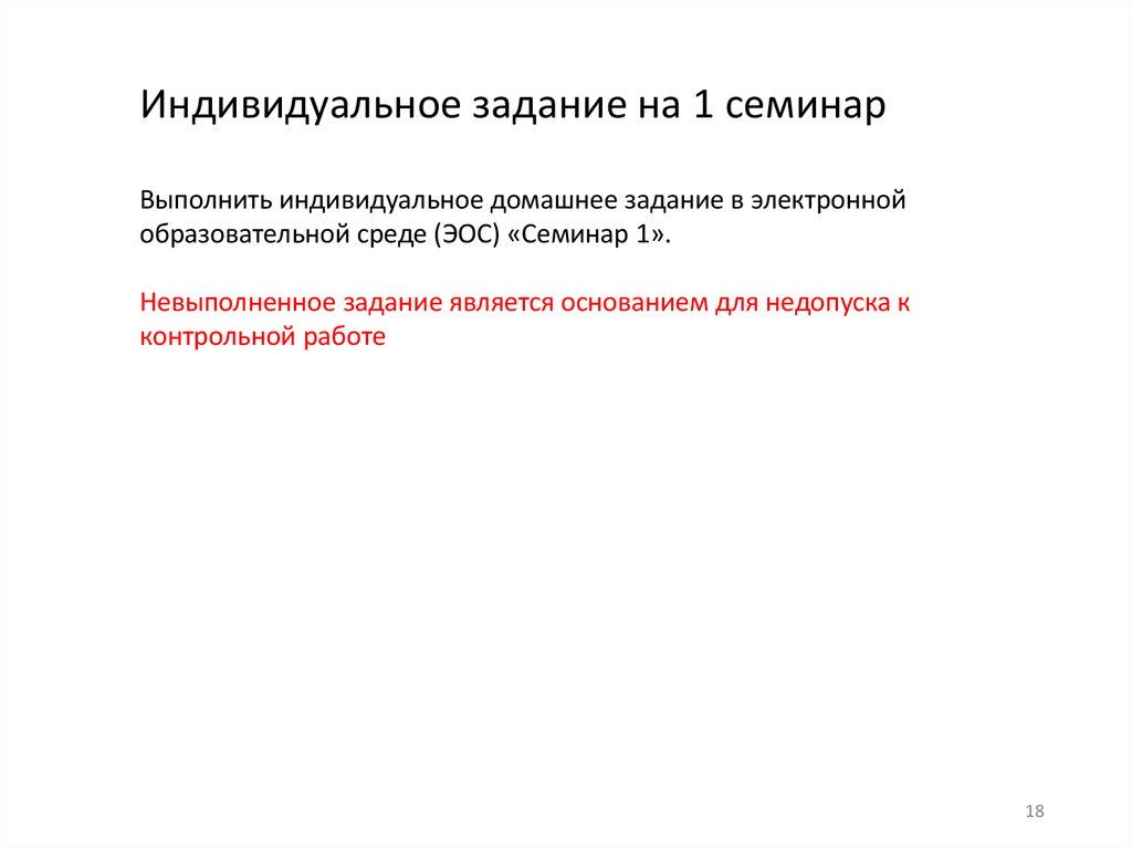Индивидуальное задание на 1 семинарВыполнить индивидуальное домашнее задание в электронной