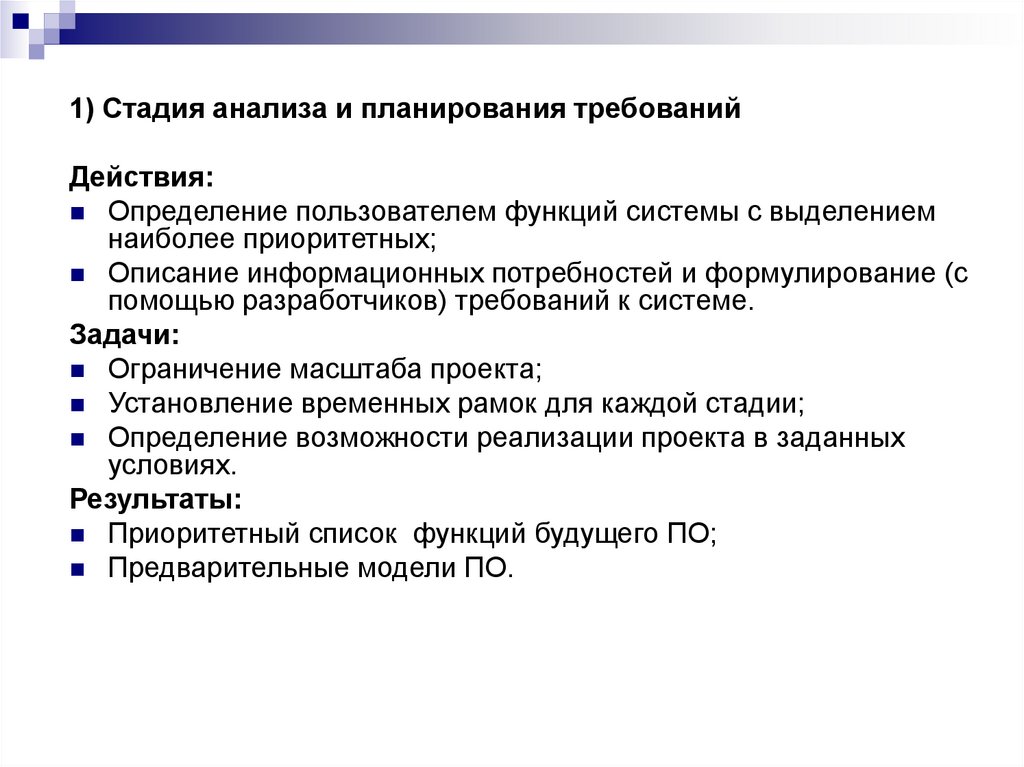потребностей в приобретении, разработке или усовершенствовании ПО и анализе