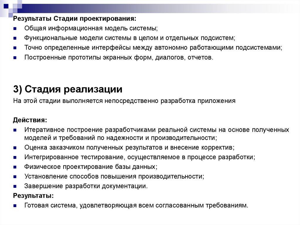 4) Стадия внедрения- производится внедрение системы параллельно с эксплуатацией