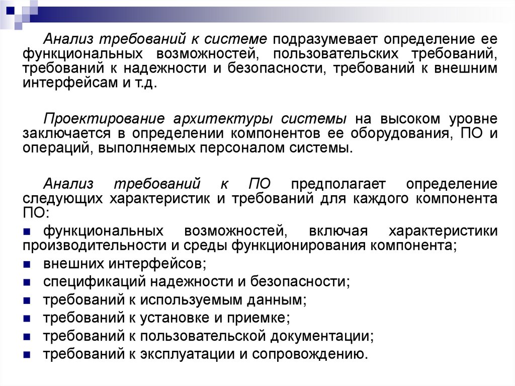Анализ требований к системе подразумевает определение еефункциональных возможностей, пользовательских требований,