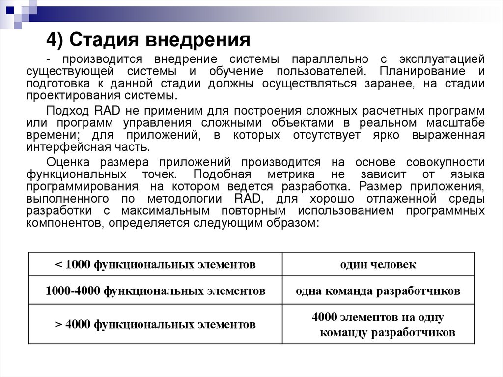 выполненного по методологии RAD, для хорошо отлаженной среды