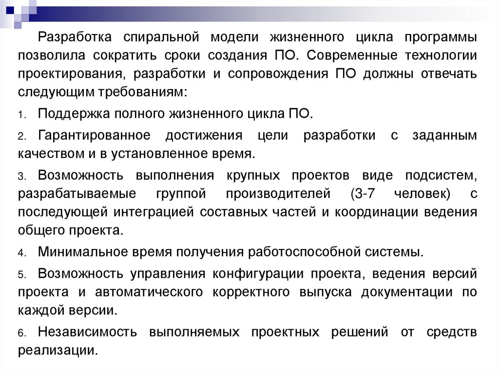 Разработка спиральной модели жизненного цикла программыпозволила сократить сроки создания ПО. Современные технологии