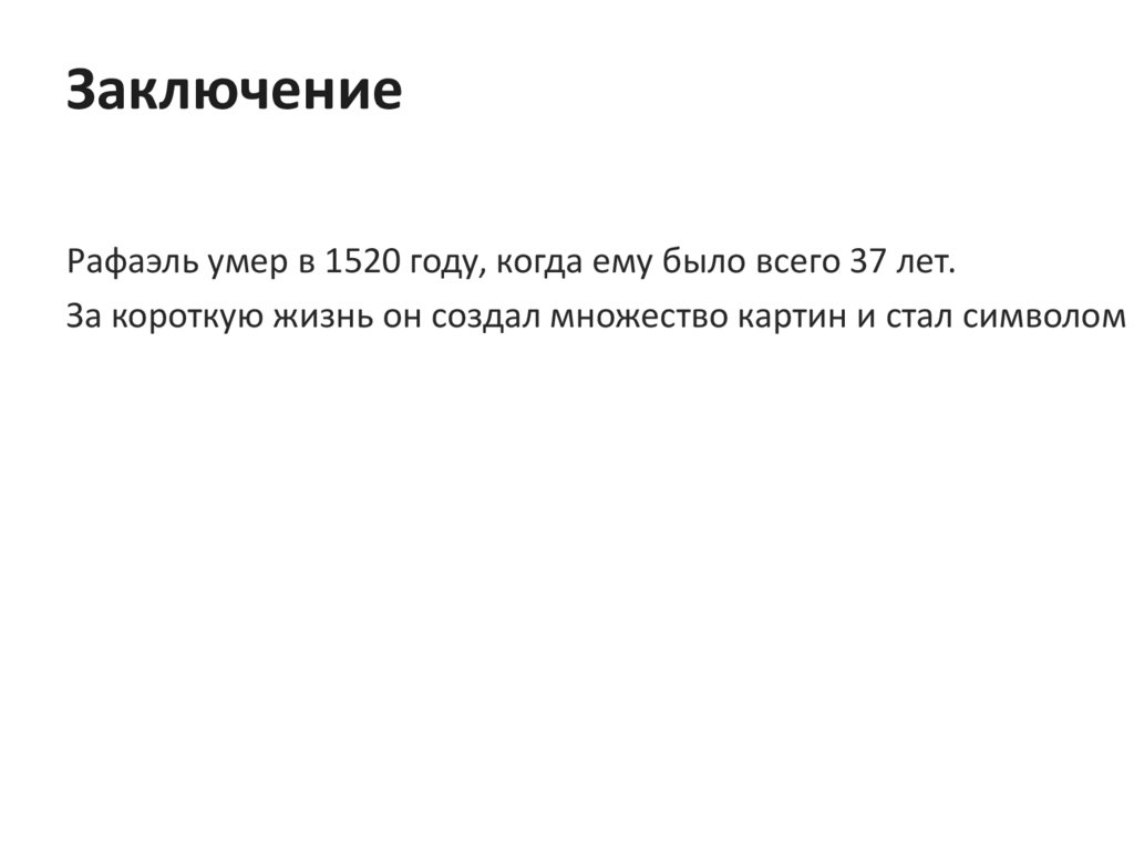 ЗаключениеРафаэль умер в 1520 году, когда ему было всего 37 лет.