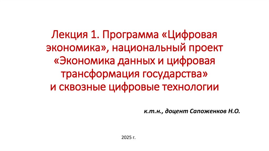 1. Лекция 1. Программа «Цифровая экономика», национальный проект «Экономика данных и цифровая трансформация государства» и