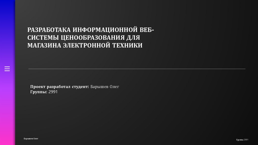 РАЗРАБОТАКА ИНФОРМАЦИОННОЙ ВЕБСИСТЕМЫ ЦЕНООБРАЗОВАНИЯ ДЛЯМАГАЗИНА ЭЛЕКТРОННОЙ ТЕХНИКИ