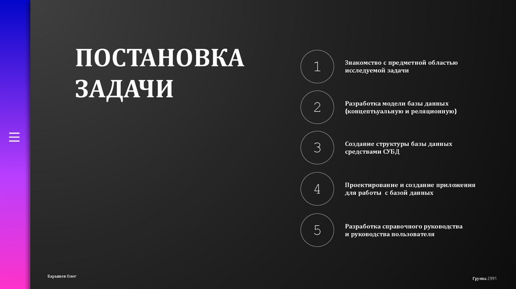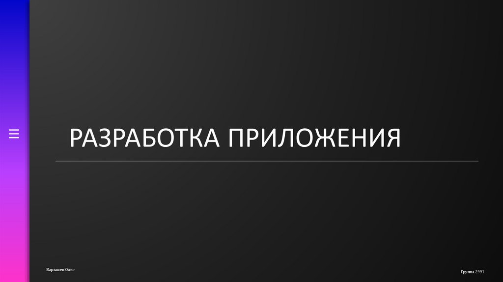 РАЗРАБОТКА ПРИЛОЖЕНИЯБарышев Олег
