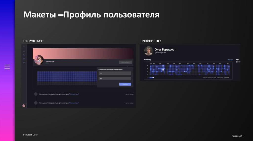 Макеты –Профиль пользователяРЕЗУЛЬТАТ: