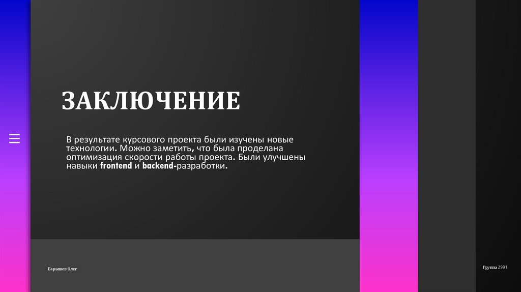 ЗАКЛЮЧЕНИЕВ результате курсового проекта были изучены новые