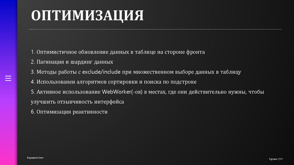 ОПТИМИЗАЦИЯ1. Оптимистичное обновление данных в таблице на стороне фронта