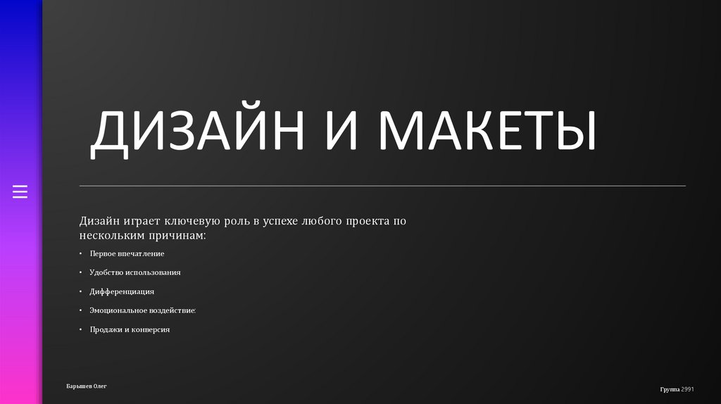 ДИЗАЙН И МАКЕТЫДизайн играет ключевую роль в успехе любого проекта по