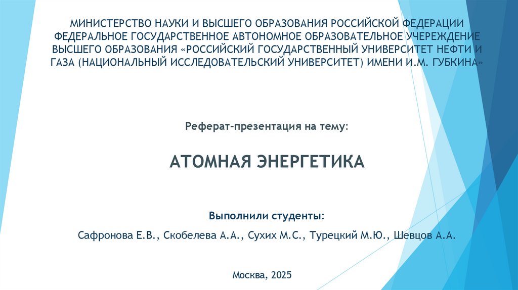 1. Реферат-презентация на тему: АТОМНАЯ ЭНЕРГЕТИКА