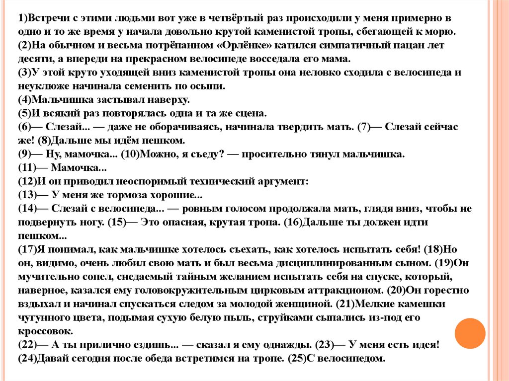 (24)Давай сегодня после обеда встретимся на тропе. (25)С велосипедом.