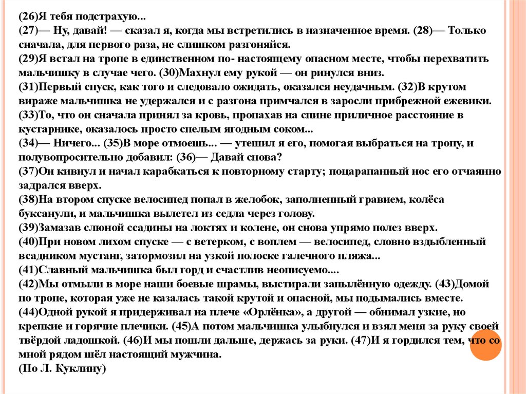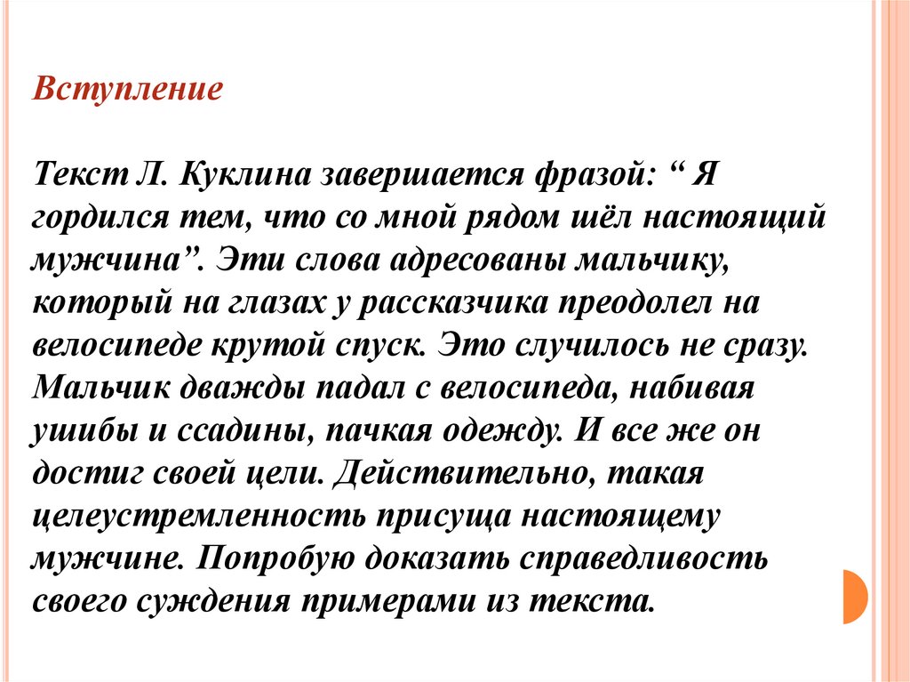 ВступлениеТекст Л. Куклина завершается фразой: “ Я