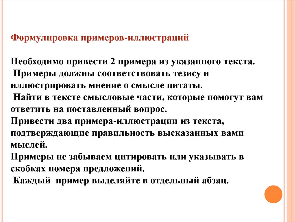 Формулировка примеров-иллюстрацийНеобходимо привести 2 примера из указанного текста.