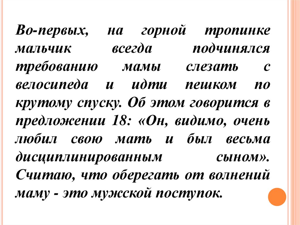 (3)У этой круто уходящей вниз каменистой тропы она неловко сходила с велосипеда и