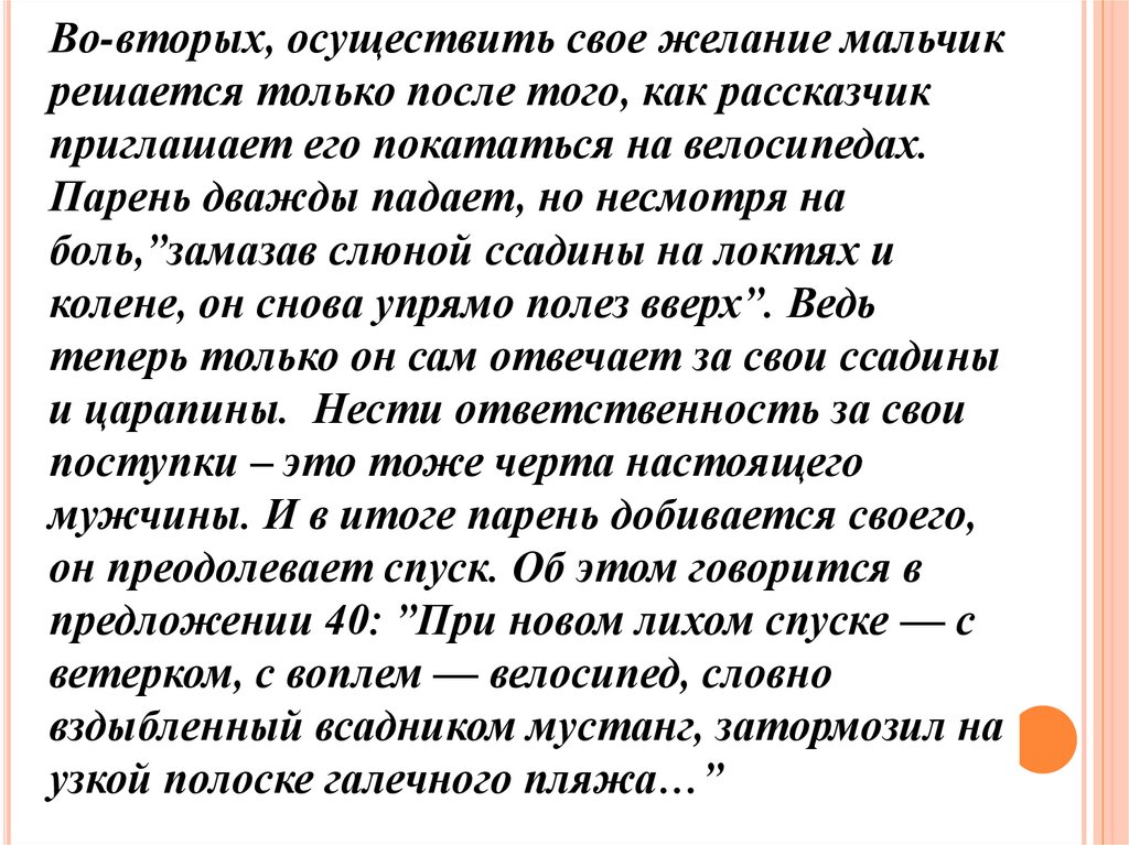 Во-вторых, осуществить свое желание мальчикрешается только после того, как рассказчик
