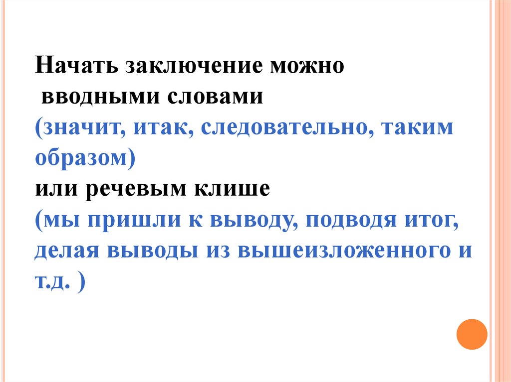 Начать заключение можновводными словами