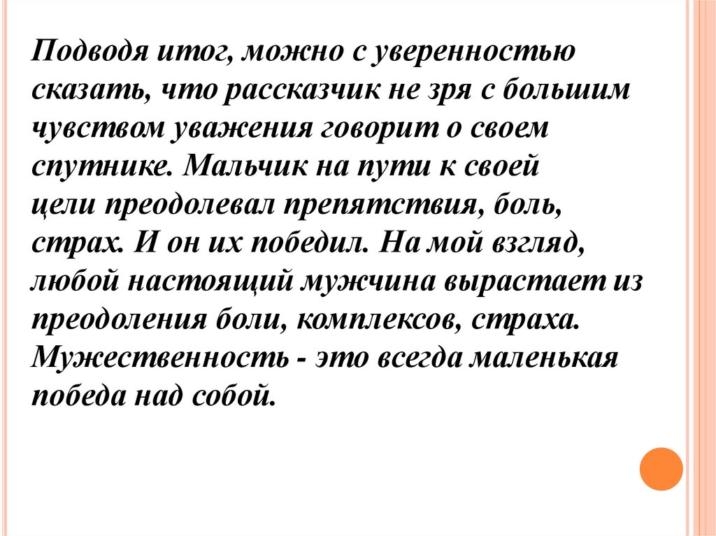 Подводя итог, можно с уверенностьюсказать, что рассказчик не зря с большим