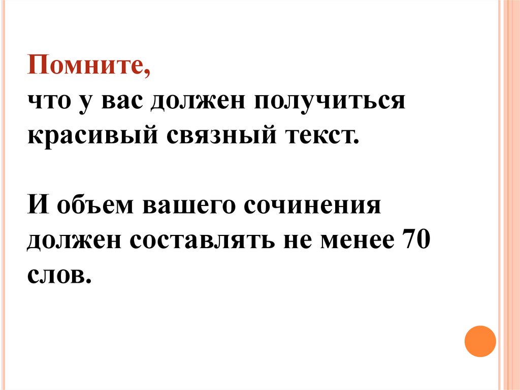 Объём сочинения должен составлять не менее 70 слов.