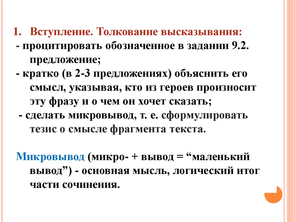 1. Вступление. Толкование высказывания:- процитировать обозначенное в задании 9.2.