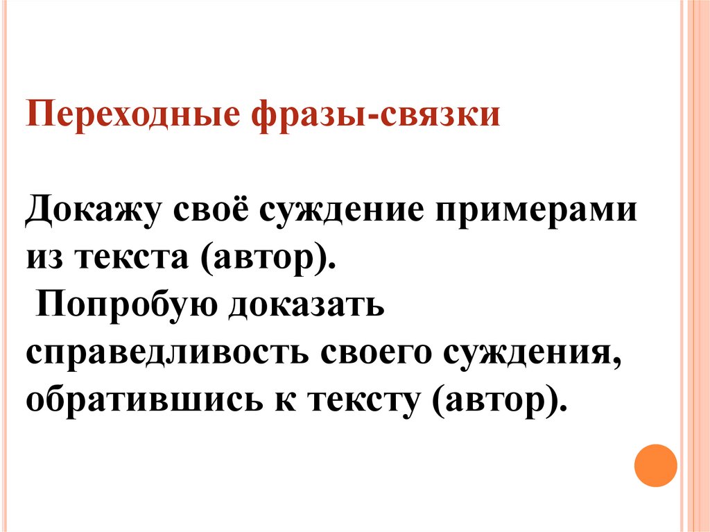 Переходные фразы-связкиДокажу своё суждение примерами