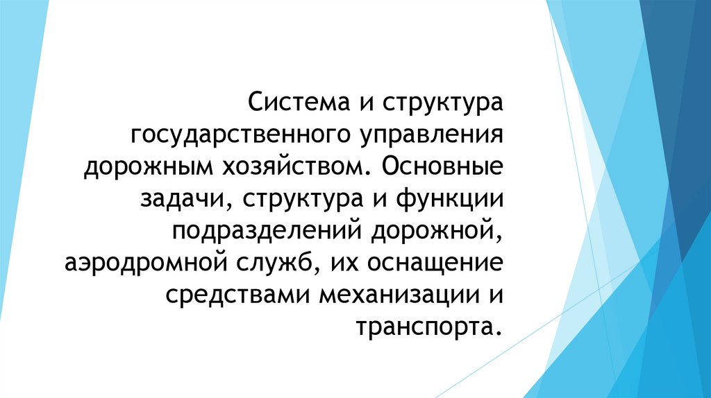 1. Система и структура государственного управления дорожным хозяйством. Основные задачи, структура и функции подразделений