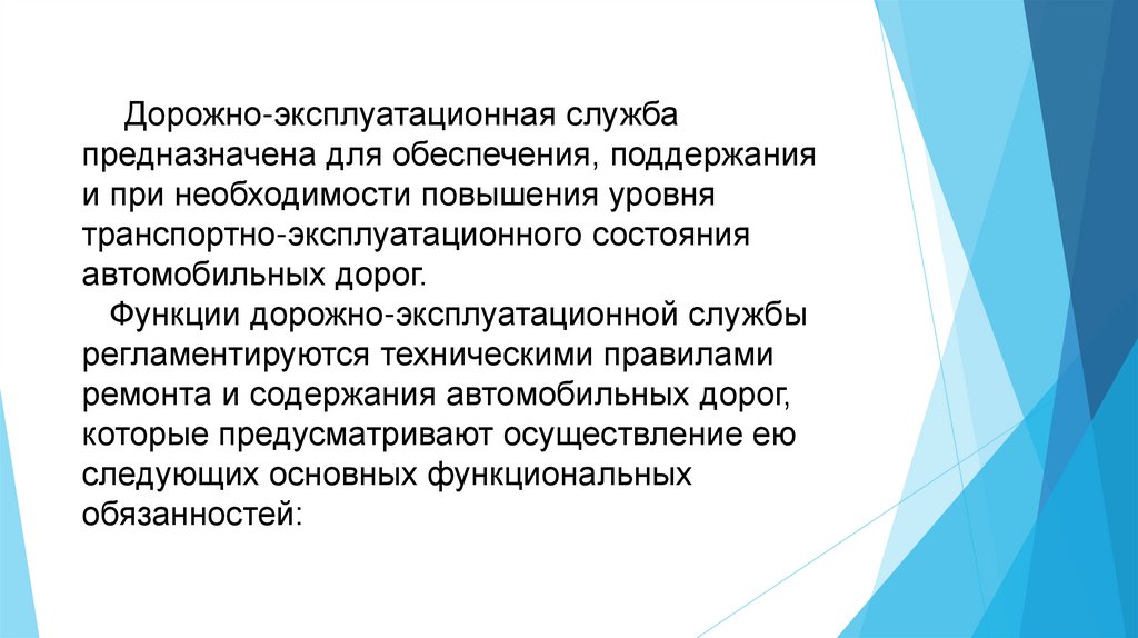 Дорожно-эксплуатационная службапредназначена для обеспечения, поддержания