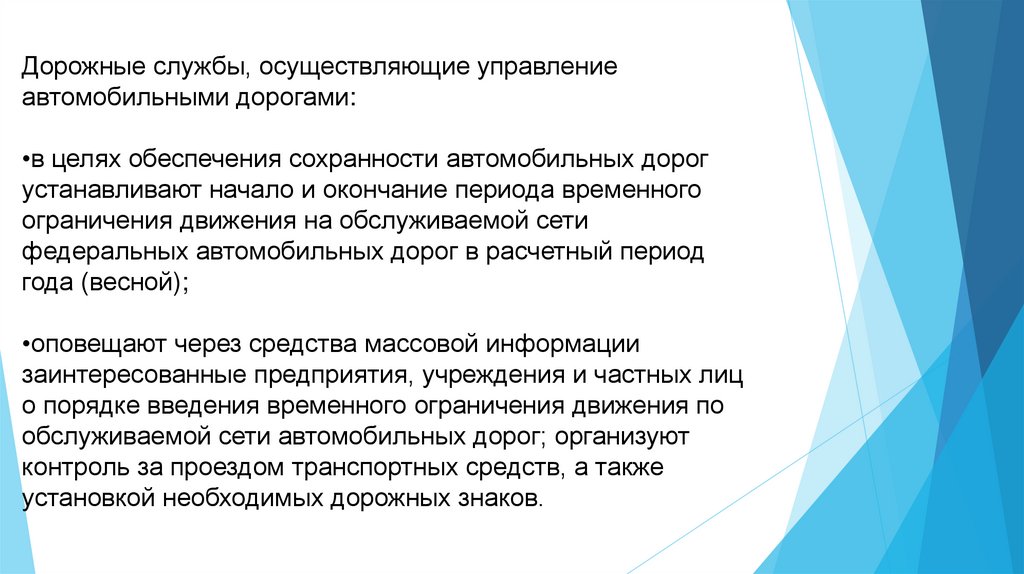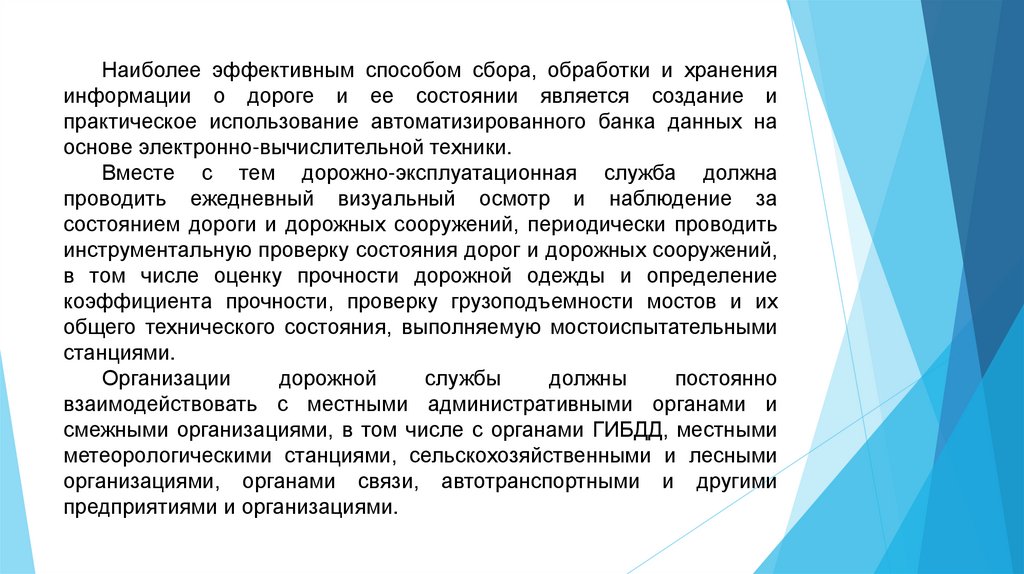 и заинтересованных организаций об условиях движения на дорогах; обеспечение