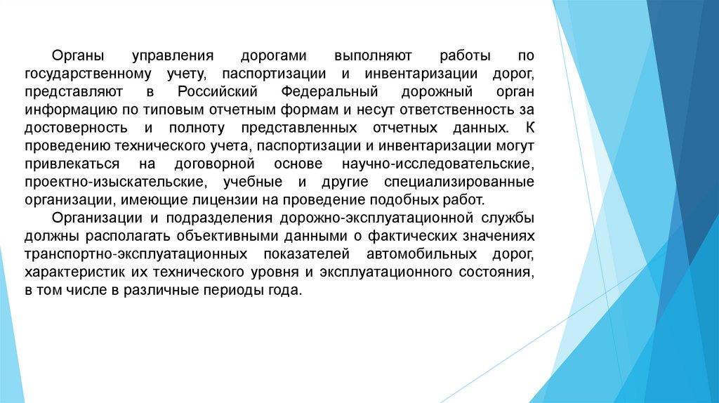 •государственный учет и паспортизация автомобильных дорог и дорожных сооружений,учет движения, диагностика и оценка состояния, создание и развитие