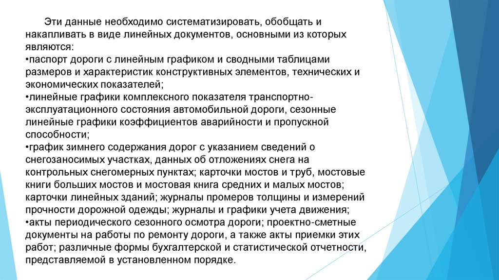 •акты периодического сезонного осмотра дороги; проектно-сметные