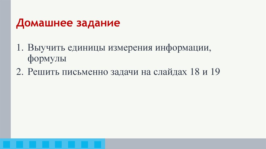 1. Выучить единицы измерения информации,формулы