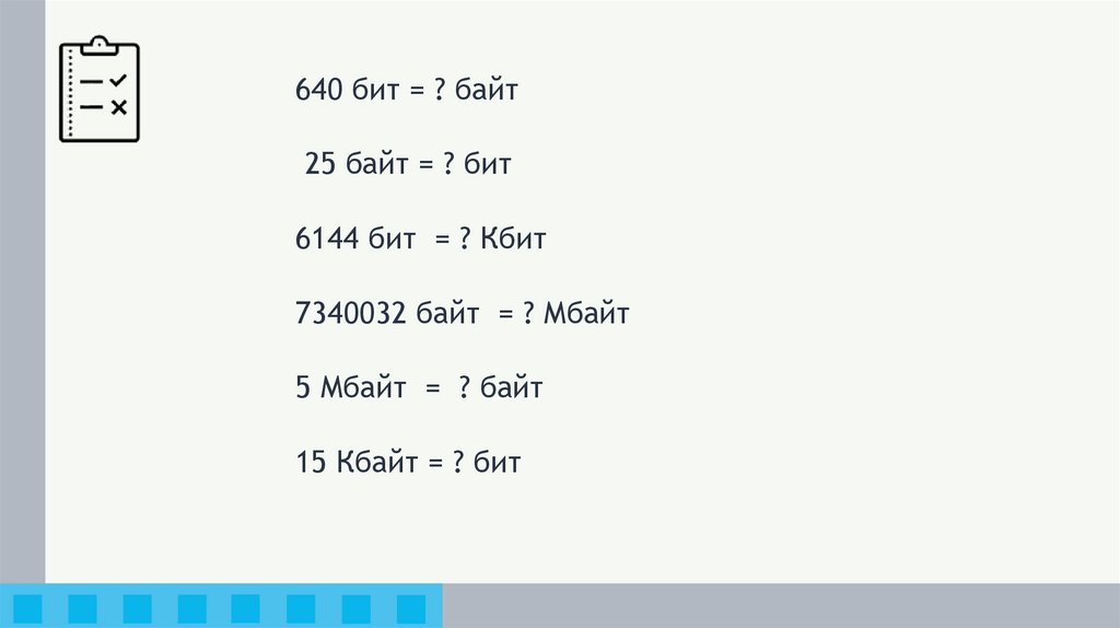 640 бит = ? байт25 байт = ? бит