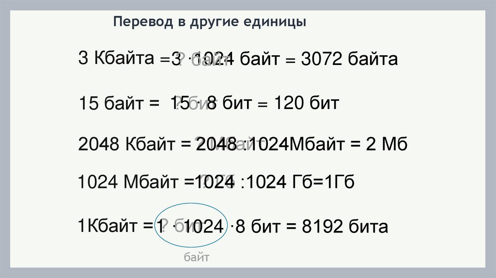 Перевод в другие единицы3 Кбайта = 3? ·1024