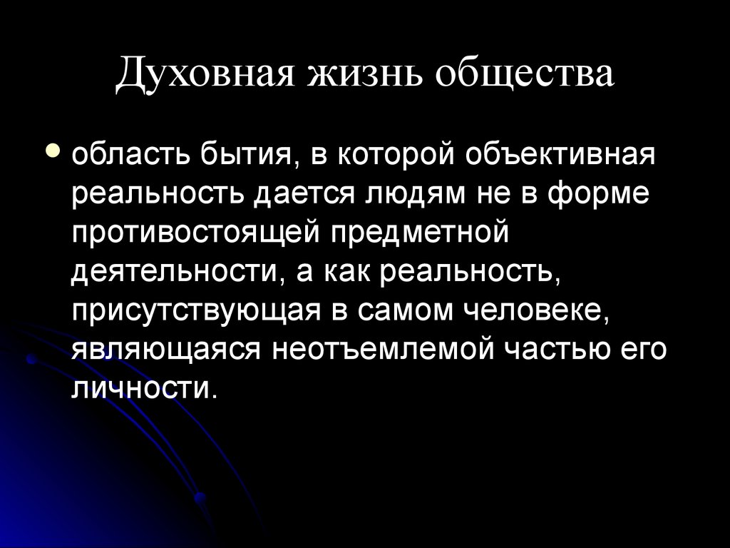 Духовная жизнь обществаобласть бытия, в которой объективная