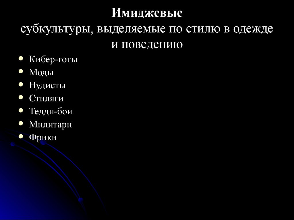 Имиджевыесубкультуры, выделяемые по стилю в одежде