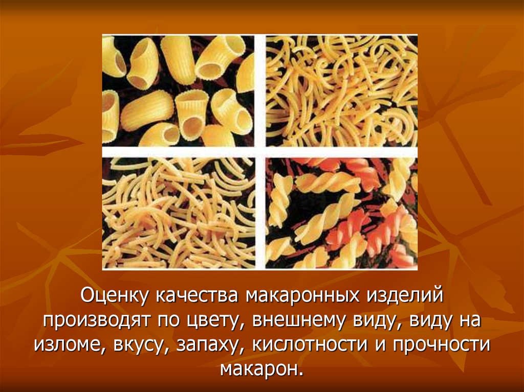 Оценку качества макаронных изделийпроизводят по цвету, внешнему виду, виду на