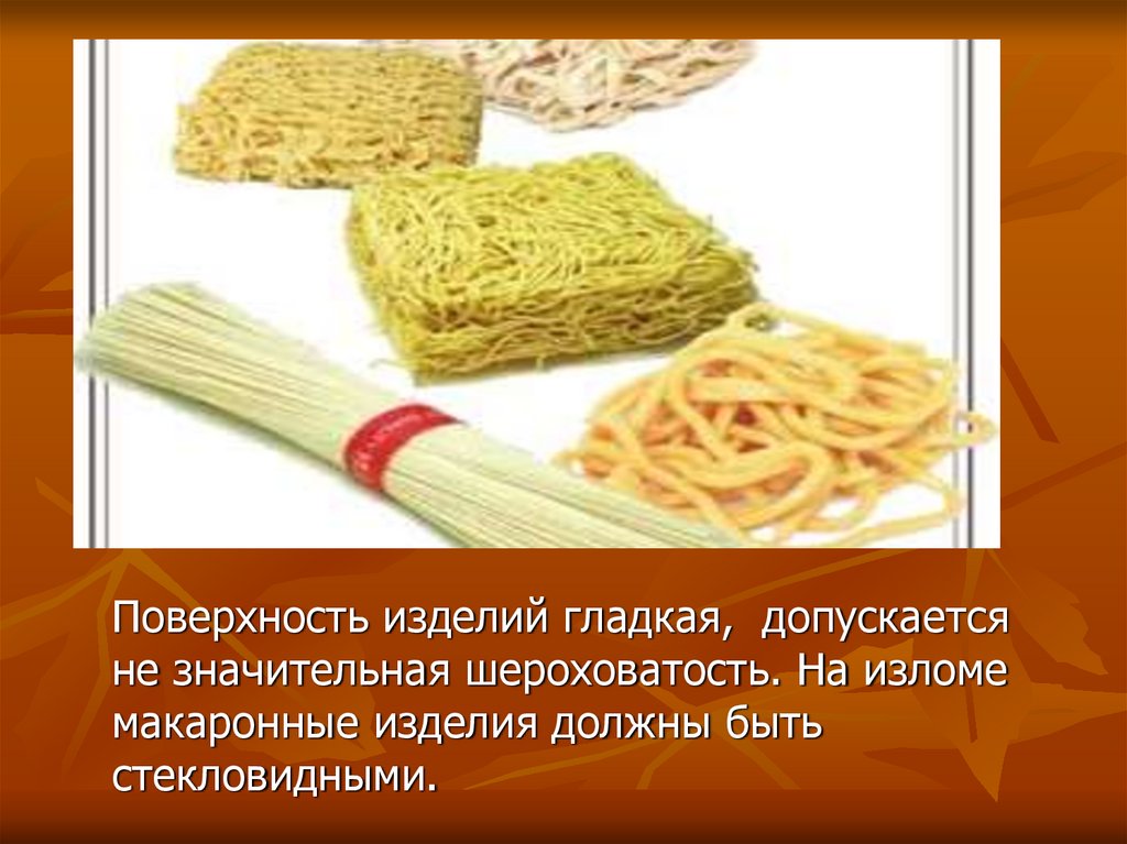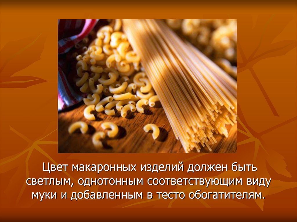 Цвет макаронных изделий должен бытьсветлым, однотонным соответствующим виду