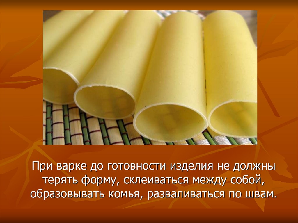 При варке до готовности изделия не должнытерять форму, склеиваться между собой,