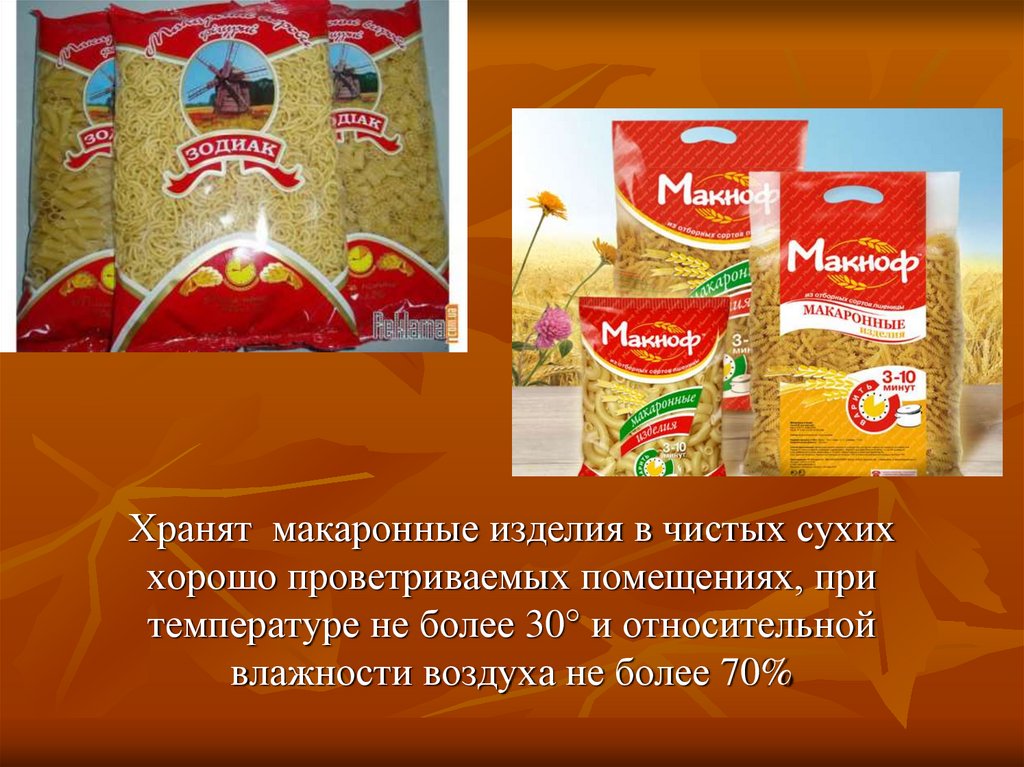 Хранят макаронные изделия в чистых сухиххорошо проветриваемых помещениях, при