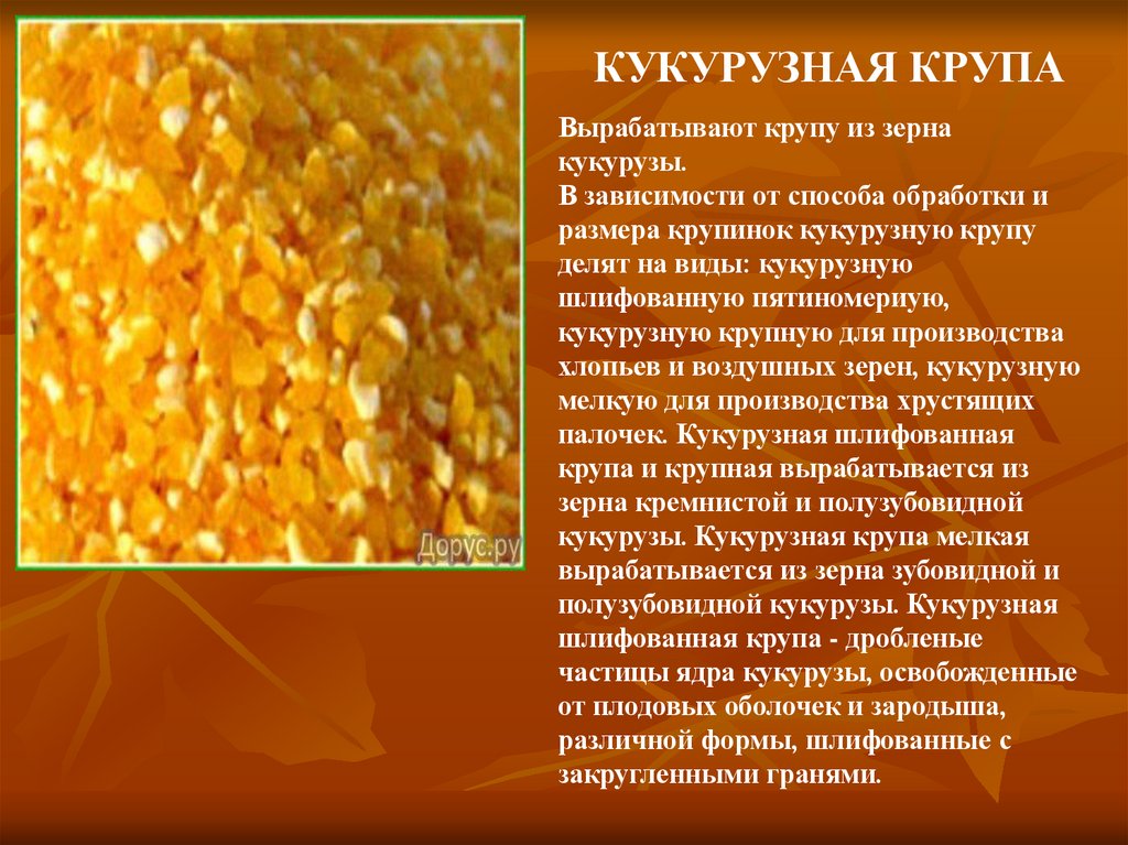 КУКУРУЗНАЯ КРУПАВырабатывают крупу из зерна