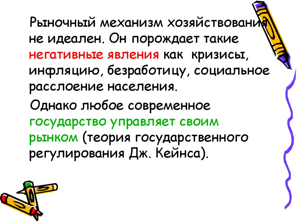 Рыночный механизм хозяйствованияне идеален. Он порождает такие