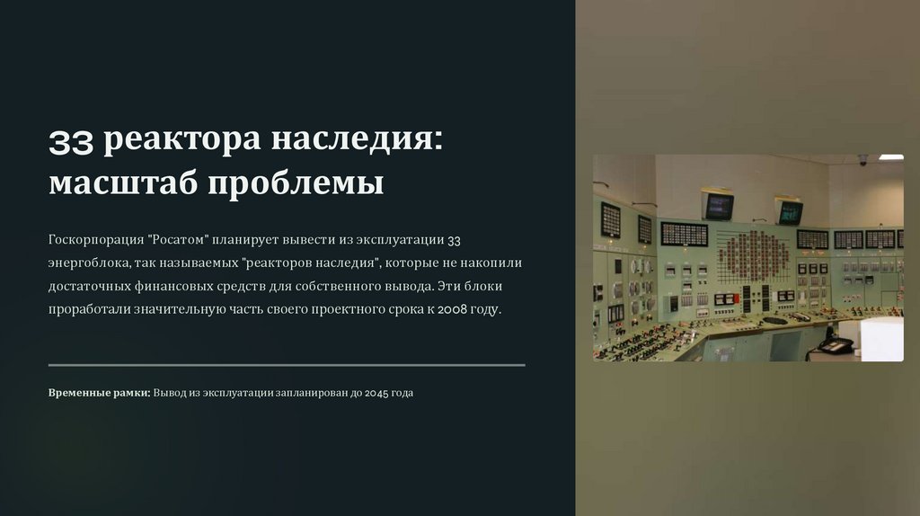 Временные рамки: Вывод из эксплуатации запланирован до 2045 года