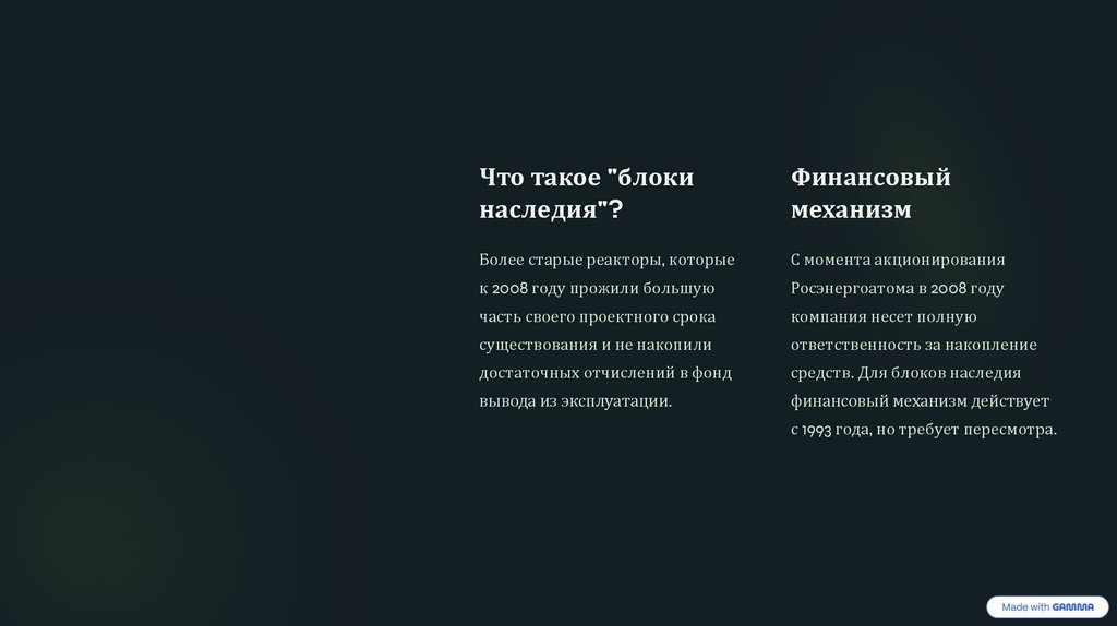 энергоблока, так называемых "реакторов наследия", которые не накопили